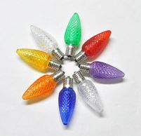 C7 LED Christmas Lights come in Faceted, Opaque (Frosted), and Smooth Transparent styles. C9 LED Christmas Lights come in Faceted and Opaque (Frosted) styles. Globe-shaped bulbs also available.